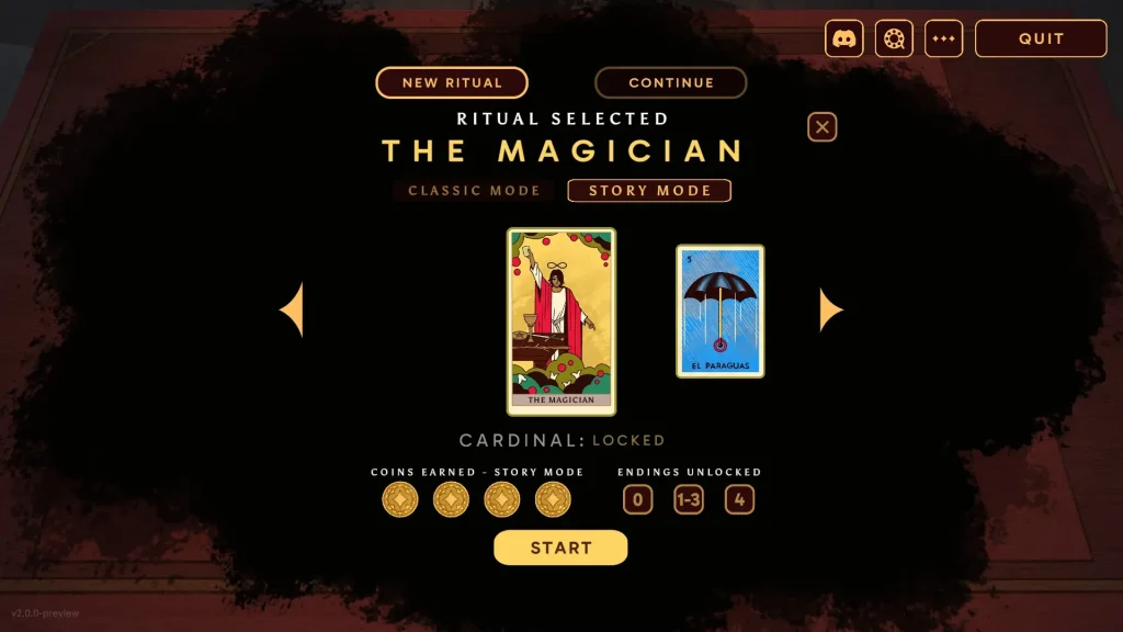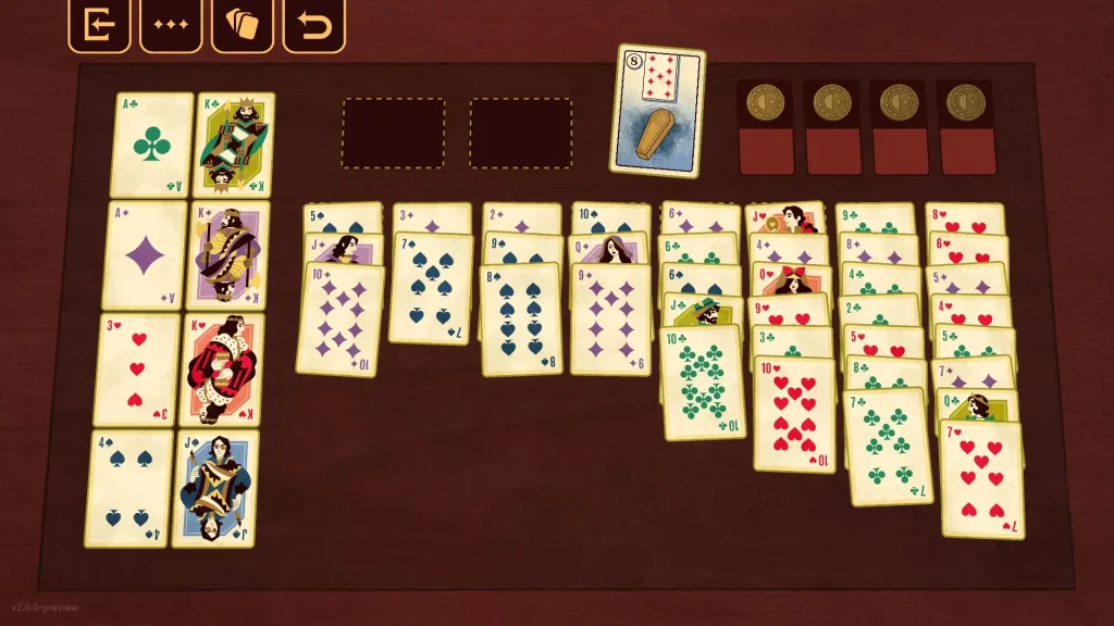Ci sono quattro monete, una per ogni seme, e ognuna rappresenta una parte del rituale. In base a come le usi o a quali carte associ, il risultato cambia. Puoi marchiare le carte per ricordarti quelle importanti, analizzare ogni mossa, e infine provare a completare la partita. Quando termini un livello, il gioco ti racconta un breve epilogo che varia in base al numero di carte giuste piazzate, regalando sempre un frammento di storia nuovo.